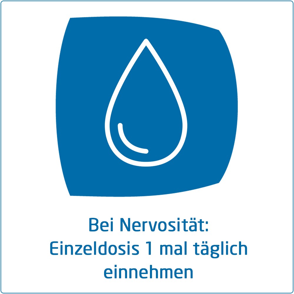Bei Nervosität nehmen Erwachsene und Kinder ab 12 Jahren 1 mal täglich 15 - 20 Tropfen ein. Kinder von 6 bis 11 Jahren erhalten 5 - 10 Tropfen als Einzeldosis.