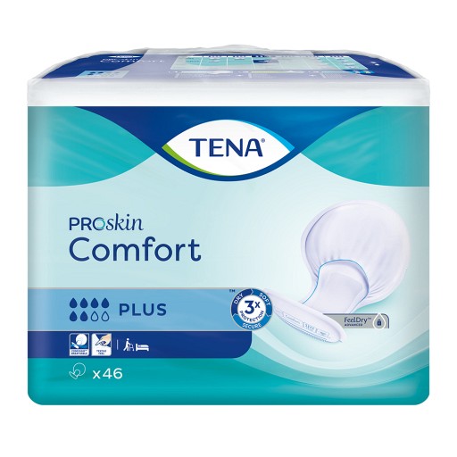 Das komfortable Produkt TENA Comfort Plus eignet sich für Menschen, die einen zuverlässigen Inkontinenzschutz mit hoher Saugstärke benötigen, aber weiterhin Vorlagen bevorzugen. Die einzigartige Schalenform bietet sicheren Schutz vor Auslaufen und angenehmen Tragekomfort durch den körpernahen Sitz.Dank FeelDry Advanced™ Technologie wird der Urin schnell von der Oberfläche weggezogen und die Haut trocken gehalten. Der absorbierende Kern schließt selbst größere Mengen Flüssigkeit verlässlich ein und bewahrt das trockene Gefühl. Zugleich lässt das vollständig atmungsaktive ConfioAir™ Rückenpanel die Luft zirkulieren und so die Haut atmen. Diese Eigenschaften tragen dazu bei, die natürliche Gesundheit der Haut zu erhalten.
