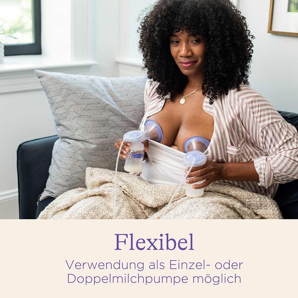 Die handliche Doppelmilchpumpe lässt sich einfach bedienen und schnell zusammensetzen. Das hygienische geschlossene System verhindert, dass abgepumpte Milch in die Schläuche gelangt, und macht die Reinigung kinderleicht. Die Doppelmilchpumpe hat ein großes LCD-Display mit Hintergrundbeleuchtung, damit die Einstellungen auch nachts gut zu sehen sind.Die richtige Größe macht’s