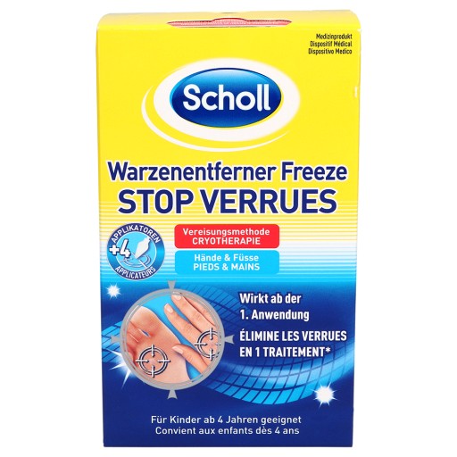 Gewöhnliche Warzen können überall am Körper auftreten, am häufigsten findet man sie aber an den Händen und Füssen. Scholl Freeze Warzenentferner enthält 16 Anwendungsstäbchen in zwei Größen. So können große und kleine Warzen gezielt behandelt werden. Effektiv ab der ersten Anwendung wird die Warze schnell und effektiv vereist. Innerhalb von zehn bis 14 Tagen löst sich die Warze normalerweise von der Haut ab und an ihrer Stelle bildet sich neue Haut. Scholl Warzenentferner Freeze basiert auf der von Ärzten angewandten Vereisungsmethode, ist einfach in der Anwendung und für Kinder ab 4 Jahren geeignet.