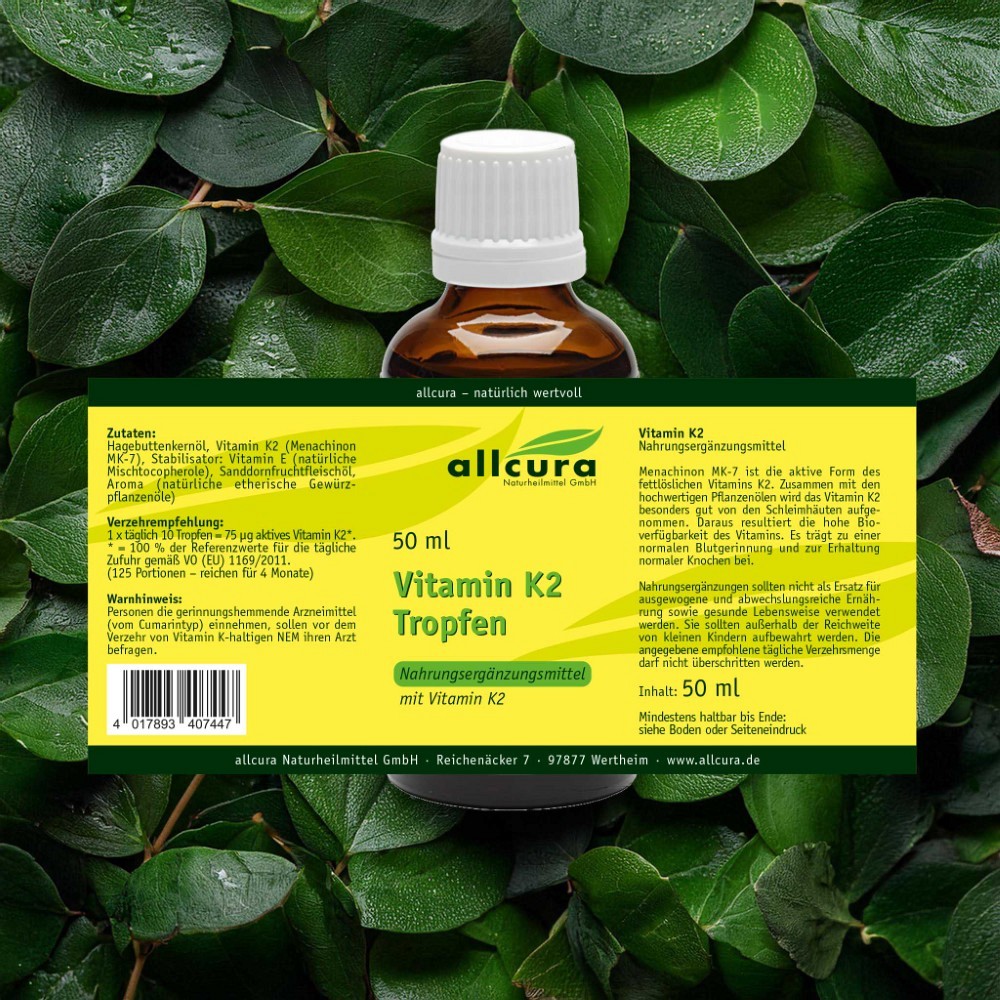 Menachinon MK-7 ist die aktive Form das fettlöslichen Vitamins K2. Zusammen mit den hochwertigen Pflanzenölen wird das Vitamin K 2 besonders gut von den Schleimhäuten aufgenommen. Daraus resultiert die hohe Bioverfügbarkeit des Vitamins. Es trägt zu einer normalen Blutgerinnung und zur Erhaltung normaler Knochen bei.Zutaten: Hagebuttenkernöl, Vitamin K 2 (Menachinon MK-7), Stabilisator: Vitamin E (natürliche Mischtocopherole), Sanddornfruchtfleisch, Aroma, (natürliche etherische Gewürzpflanzenöle).