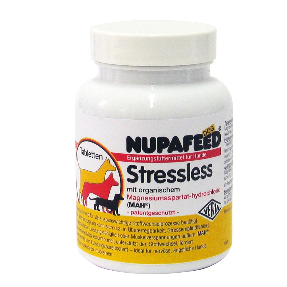 Nupafeed® stress-less dient zur optimalen Versorgung mit Magnesium – ideal für nervöse, ängstliche Hunde und bei muskulären Problemen.Fütterungsempfehlung