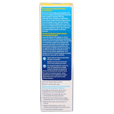 Die Scholl Anti-Hornhaut Creme Intensiv verbindet effektive Hornhautreduktion mit einer spürbaren Pflegewirkung und dem Wirkstoffkomplex mit natürlichen Fruchtsäuren, Pfirsichkernöl, Aloe Vera und Allantoin. Sie löst sanft überschüssige Hautschüppchen ohne die Haut zu reizen. Danke wertvoller Pflegesubstanzen wird die Fußhaut mit Feuchtigkeit versorgt. Bei regelmäßiger Anwendung wird die Entstehung neuer Hornhaut reduziert. Sie zieht schnell ein und fettet nicht.