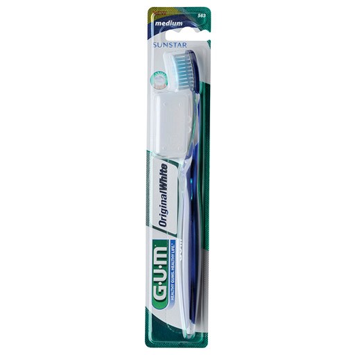 Holen Sie sich mit der GUM Original White Zahnbürste Ihr weißes Lächeln zurück. Das innovative Design ist erwiesenermaßen effektiver gegen Verfärbungen als eine normale manuelle Zahnbürste.