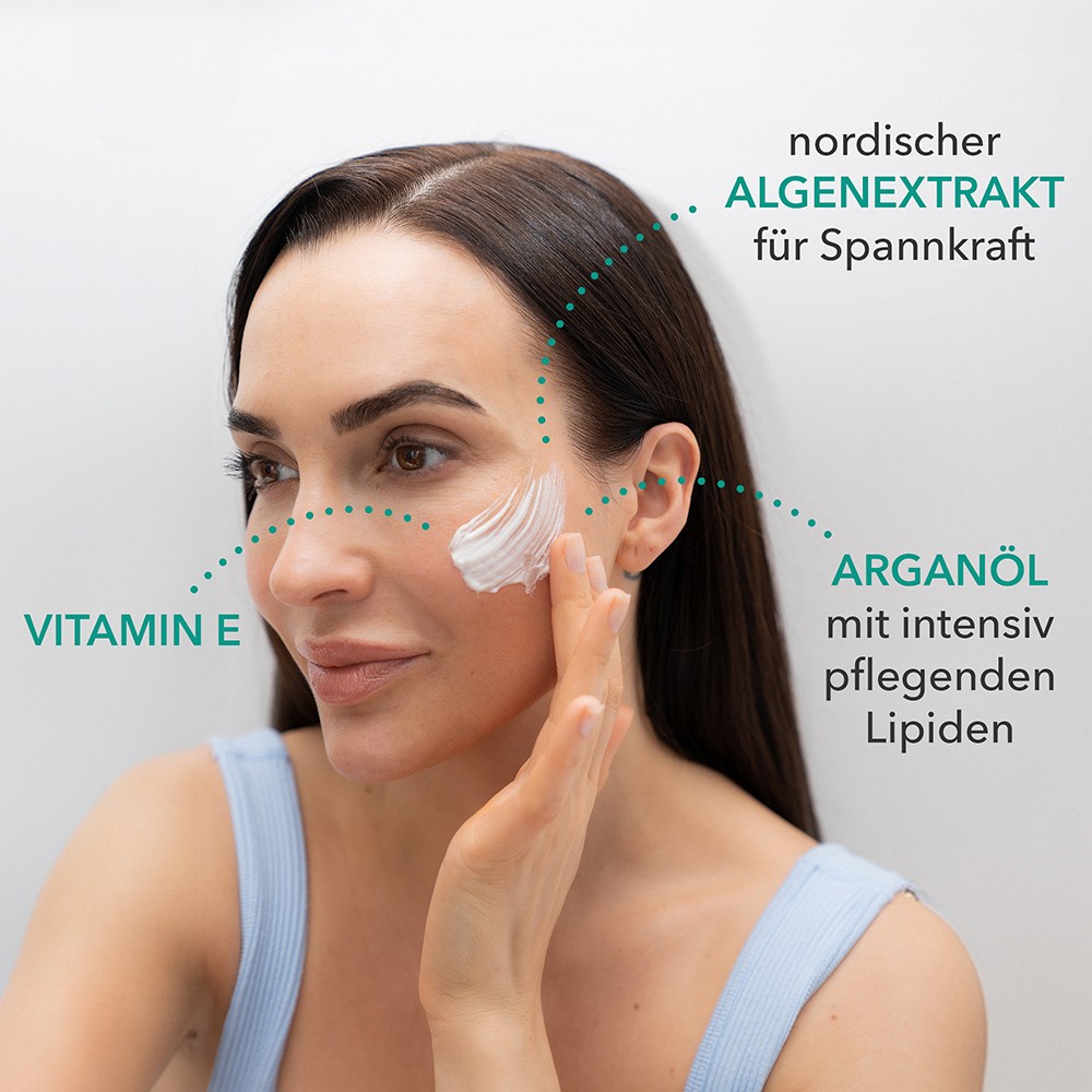 Kostbares Arganöl enthält einen hohen Anteil an Vitamin E und biologisch aktiven, ungesättigten Fettsäuren. Die Verbindung des Trockenöls mit naturreinen Totes Meer Mineralien unterstützt den Regenerationsprozess bei spröder, trockener Haut. Feine Linien erscheinen gemildert und die Haut gewinnt an Elastizität und jugendlicher Ausstrahlung.