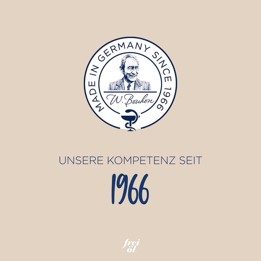 Seit fast 60 Jahren steht die herausrangende Kernkompetenz von frei öl für die Pflege mit kostbaren Ölen.