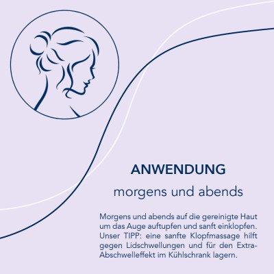 Morgens und abends auf die gereinigte Haut um das Auge auftupfen und sanft einklopfen.