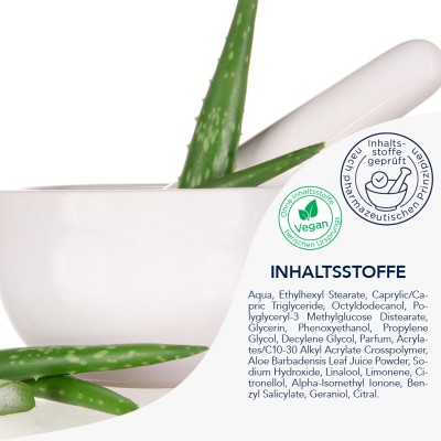- Trocknet die Haut nicht aus und pflegt durch Aloe vera und Glycerin