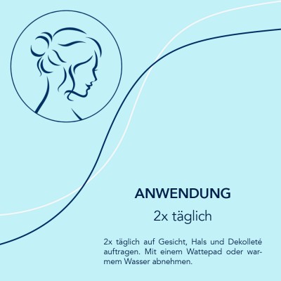 Morgens und abends auf Gesicht, Hals und Dekolleté auftragen und mit einem Wattepad oder reichlich warmem Wasser abnehmen.Ergänzende Produktinformationen und Tipps: