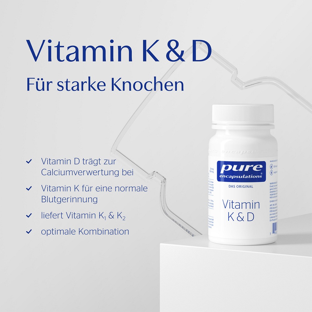 Wie alle Nährstoffpräparate von Pure Encapsulations® ist auch Vitamin K &amp. D wissenschaftlich fundiert und zeichnet sich durch ideale Bioverfügbarkeit sowie maximale Verträglichkeit aus – frei von unnötigen Zusatz- und Konservierungsstoffen.