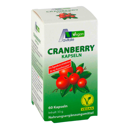 Avitale Cranberry Vegan Kapseln sind sojafrei, glutenfrei und ohne Farb-/Konservierungsstoffe.