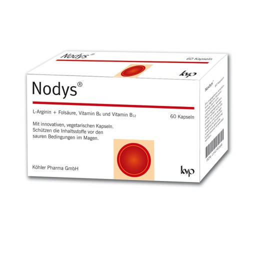 Folsäure, Vitamin B6 und Vitamin B12 tragen zu einem normalen Homocystein-Stoffwechsel bei.Arginin ist eine semi-essentielle Aminosäure, die vom Organismus zur Bildung von Proteinen herangezogen wird. Nur die L-Form dieser Aminosäure verfügt über eine biologische Funktion im menschlichen Körper. Wenn jedoch die Zufuhr an L-Arginin über die Ernährung unzureichend ist, kann L-Arginin durch Nodys® ergänzt werden.