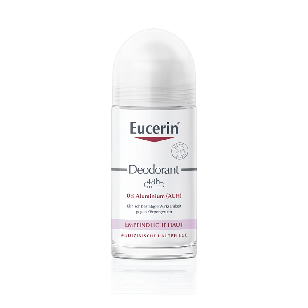Eucerin Deodorant Roll-on Empfindliche Haut 48 h 0% Aluminium ist frei von Aluminium (ACH), Alkohol und Parabenen. Es wird selbst von sehr empfindlicher Haut (auch bei Neurodermitis) vertragen. Das Deodorant für empfindliche Haut ist so mild, dass es auch nach der Rasur oder Epilation sofort aufgetragen werden kann.