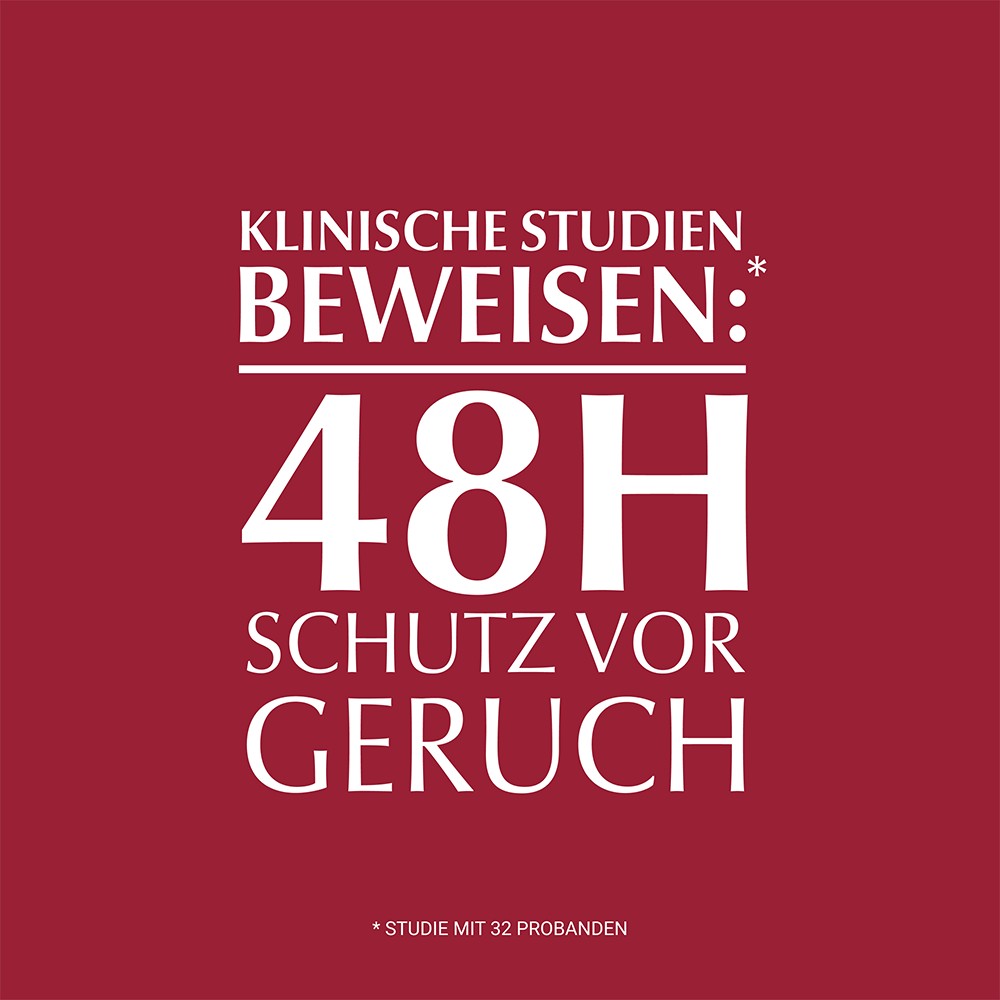 Die sehr gute Verträglichkeit – selbst bei sehr empfindlicher Haut und nach der Rasur – wurde in einer dermatologischen Studie an Testpersonen mit Neurodermitis bestätigt. Darüber hinaus konnte die Wirksamkeit des Deos für mindestens 48 Stunden wissenschaftlich nachgewiesen werden.