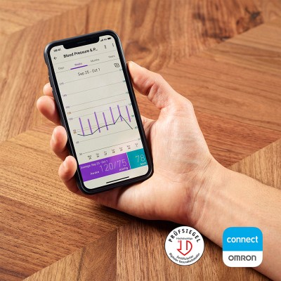 OMRON EVOLV übermittelt die Ergebnisse der Messungen per Bluetooth automatisch an das Smartphone, sodass die Blutdruckwerte jederzeit in der OMRON connect App abgelesen werden können. Das EVOLV wurde auch erfolgreich für den Einsatz bei schwangeren Frauen validiert.