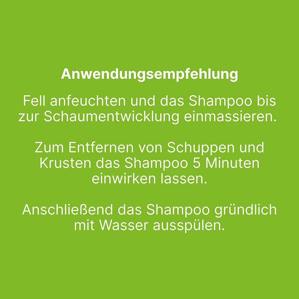 Pflegeshampoo zur äußeren Anwendung. Fell anfeuchten und ICHTHO VET® DERMA-SHAMPOO bis zur Schaumentwicklung einmassieren. Zum Entfernen von Schuppen und Krusten das Shampoo 5 Minuten einwirken lassen. Anschließend das Shampoo gründlich mit Wasser ausspülen. Aus Hygienegründen empfiehlt sich die Benutzung von Einmalhandschuhen.ICHTHO VET: INTENSIVE PFLEGE FÜR DIE TIERHAUT