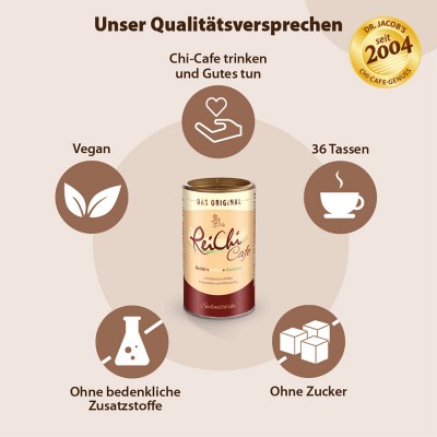 „Kann Kaffeegenuss auch gesund sein?“ Mit Chi-Cafe kreierte Dr. L. M. Jacob die erste Kaffee-Alternative in Europa, die man mit gutem Gewissen mehrmals täglich genießen kann.Chi-Cafe begeistert gesundheitsbewusste Genießer durch optimal aufeinander abgestimmte Inhaltsstoffe und seinem aromatisch-cremigen Geschmack.