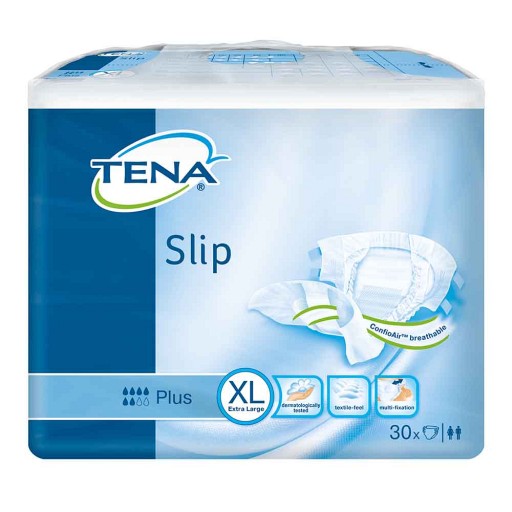 TENA Slip Plus mit ConfioAir ist komplett atmungsaktiv, dermatologisch getestet und sorgt somit für gesunde Haut. Der schnell saugende Kern des Inkontinenzprodukts bietet hohen Schutz für den Betroffenen. Das textil-ähnliche Material fühlt sich weich an und die wieder verschließbaren Verschlüsse garantieren einen komfortablen Sitz.