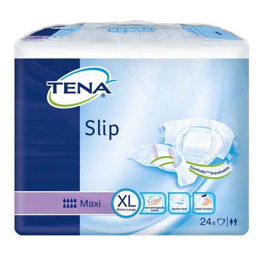 TENA Slip Maxi mit ConfioAir ist komplett atmungsaktiv, dermatologisch getestet und sorgt somit für gesunde Haut. Der schnell wirkende Kern des Inkontinenzprodukts mit extra starker Saugstärke bietet hohen Schutz für den Betroffenen. Das textil-ähnliche Material fühlt sich weich an und die wieder verschließbaren Verschlüsse garantieren einen komfortablen Sitz. TENA Slip Maxi ist auch gut für die Nachtversorgung geeignet.
