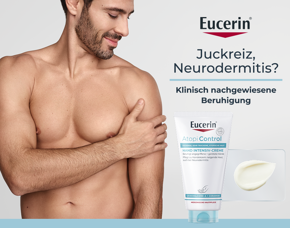 Die beruhigende, antibakterielle Ceramid Creme eignet sich ebenso als tägliche Basis-Pflege bei Neurodermitis in schubfreien Phasen, als intensive Pflege während einer akuten Phase und für zu Handekzemen neigende Haut. Dass die Eucerin Handcreme ihre Haut vom unangenehmen Spannungsgefühl befreit, bestätigten 97 % der Teilnehmenden einer Studie*.