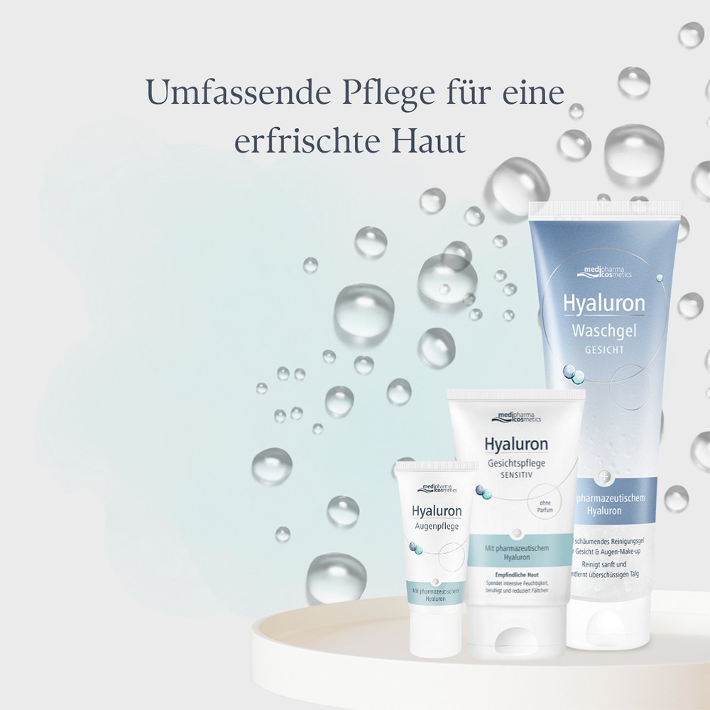 Um das Gesicht auf die Pflegecreme vorzubereiten eignet sich das Hyaluron Waschgel von medipharma cosmetics.