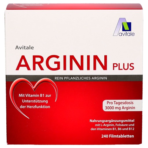 Avitale Arginin Plus ist ein Nahrungsergänzungsmittel mit 3000 mg L-Arginin pro Tag sowie Folsäure und den Vitaminen B1, B6 und B12. Die Produktion erfolgt ausschließlich in Deutschland bei einem zertifizierten Arzneimittelhersteller und genügt höchsten Ansprüchen an Qualität und Sicherheit.