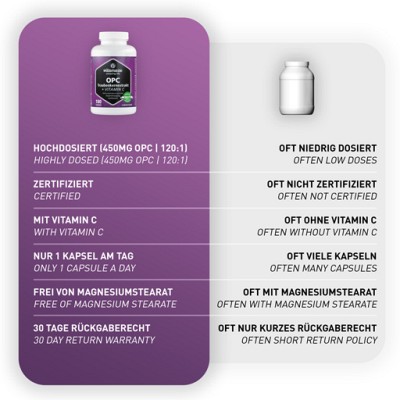 Wirkung &. Nutzen von OPC Traubenkernextrakt + Vitamin C
