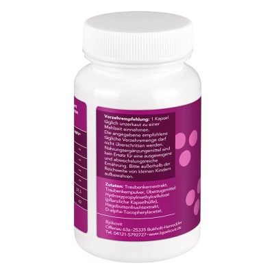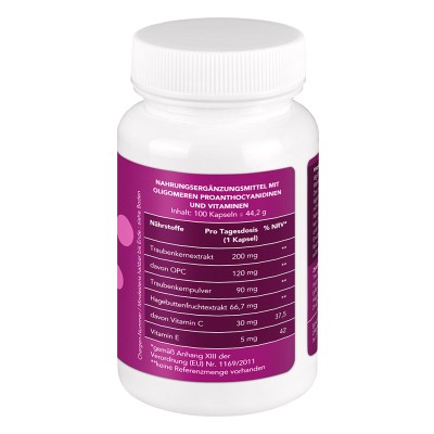 Jede Kapsel enthält 200 mg Traubenkernextrakt, standardisiert auf mindestens 60% OPC - Oligomere Proanthocyanidine - entspricht mindestens 120 mg OPC pro Kapsel - standardisiert auf mindestens 95% PAC –. Proanthocyane.Das perfekte Zusammenspiel