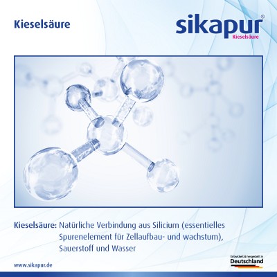 Da wir ca. 60 mg Silicium am Tag ausscheiden, unser Körper Spurenelemente nicht selbst herstellen kann und eine regelmäßige Zufuhr über die Nahrung meist nicht möglich ist, eignen sich sikapur Kieselsäure Präparate ideal zur Deckung des täglichen Siliciumbedarfs.