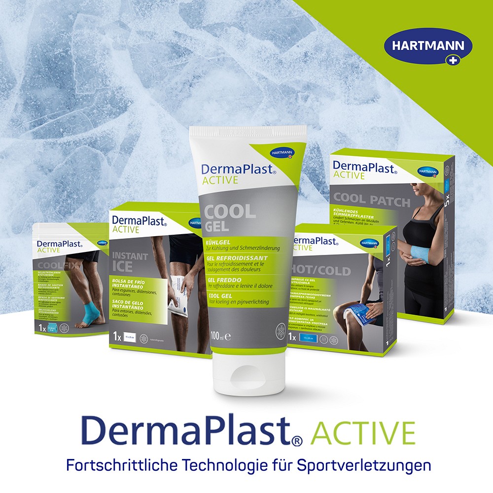 Das DermaPlast ACTIVE Portfolio beinhaltet Produkte zum „Kühlen“, „Wärmen“ und „Stabilisieren/Unterstützen“ bei Sportverletzungen. Sie können vor dem Training zur Verletzungsprävention und während des Trainings zur Aufrechterhaltung der sportlichen Leistungsfähigkeit beitragen.