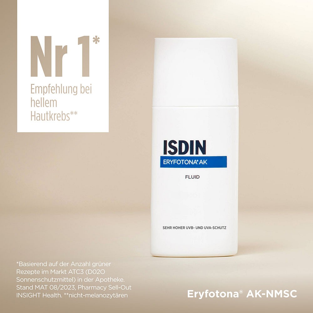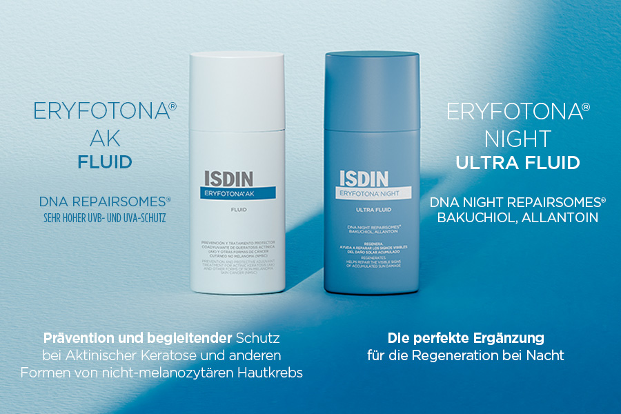 Eryfotona AK Fluid ist ein Medizinprodukt zur Vorbeugung und unterstützender Behandlung aktinischer Keratosen und hellem Hautkrebs (NMSC).