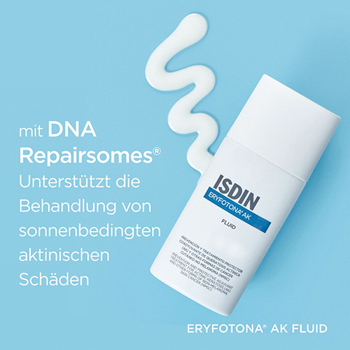 Eryfotona AK enthält die einzigartigen DNA Repairsomes, eine von ISDIN patentierte Technologie, welche den Körper unterstützen, weitere 45% dieser DNA Schäden zu reparieren. Somit wird die Fähigkeit der Haut, sich selbst zu reparieren, verdoppelt.