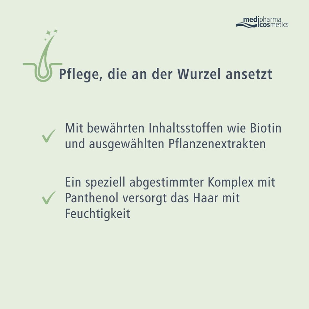 Mit ausgewählten Pflanzenextrakten, Panthenol und Biotin zur Stärkung und Pflege der Haare.
