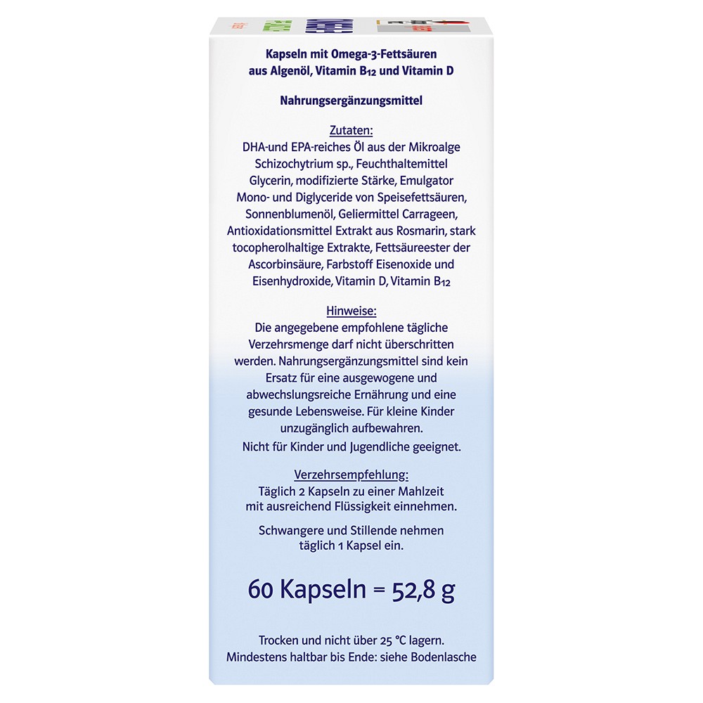 NahrungsergänzungsmittelKapseln mit Omega-3 Fettsäuren aus Algenöl, Vitamin D