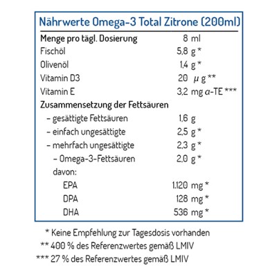 • 2.000 mg Omega-3 pro Tagesdosierung (8 ml/1 EL)