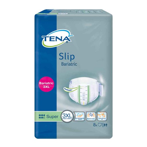 TENA Slip Bariatric wurde speziell für inkontinente Menschen mit starkem Übergewicht konzipiert. Die Einweg-Inkontinenzhose ist komplett atmungsaktiv und ermöglicht eine individuelle Anpassung für einen optimalen und rutschfesten Sitz. Die Kombination aus flexiblen Stretch-Einsätzen und elastischen Beinöffnungen gewährleistet eine körpernahe und bequeme Passform.Die atmungsaktiven, textilähnlichen Seitenteile des Inkontinenzschutzes halten die Haut durch gute Luftzirkulation trocken und unterstützen die natürliche Gesundheit der Haut. Dank der FeelDry Technologie werden selbst große Mengen Flüssigkeit sehr schnell in den Saugkern geleitet. Dort bleibt der Urin sicher eingeschlossen, sogar unter Druck. Das bedeutet mehr Komfort und ist ein entscheidender Schritt zu besserer Hautgesundheit.