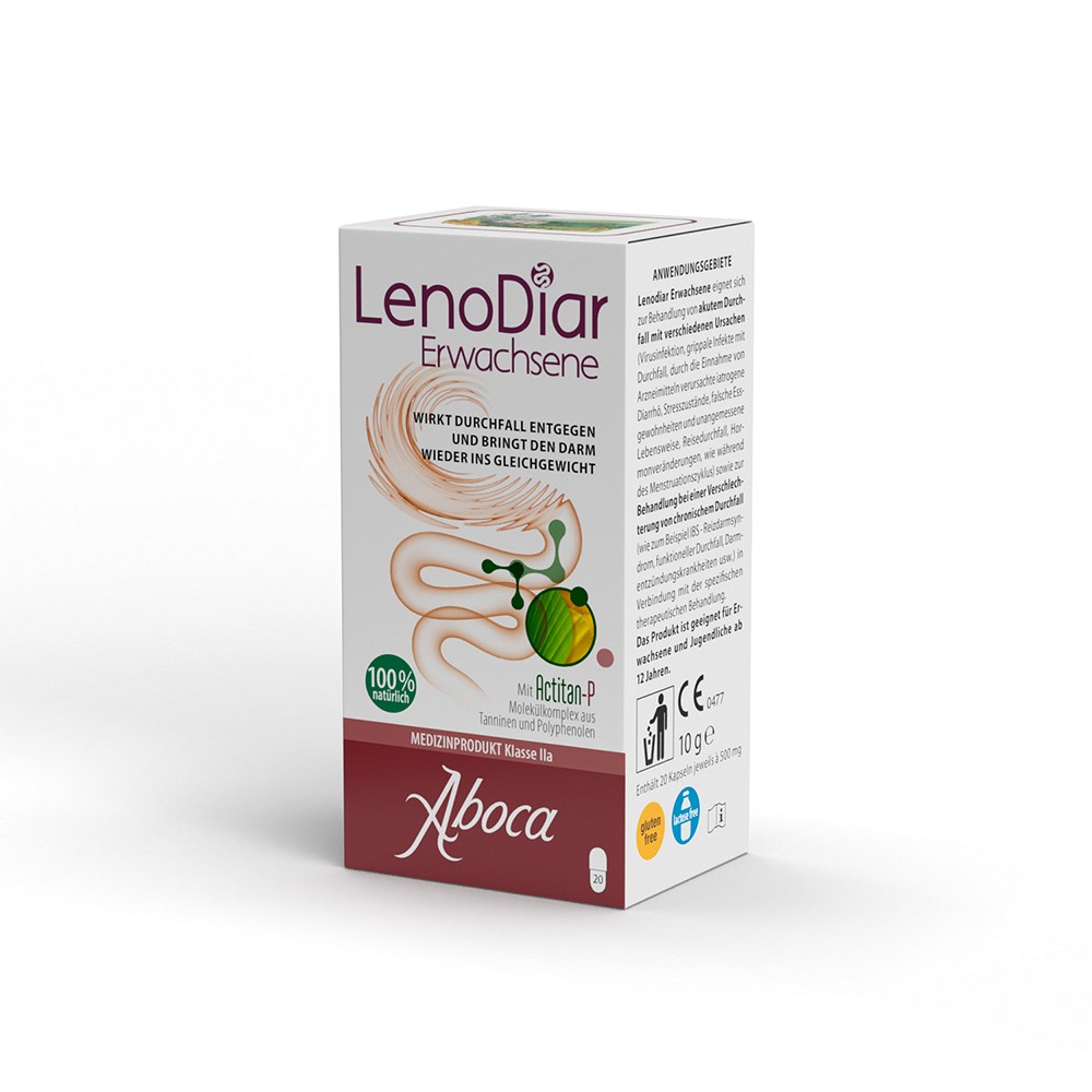Lenodiar Erwachsene eignet sich zur Behandlung von akutem Durchfall mit verschiedenen Ursachen (Virusinfektion, grippale Infekte mit Durchfall, durch die Einnahme von Arzneimitteln verursachte iatrogene Diarrhö, Stresszustände, falsche Essgewohnheiten und unangemessene Lebensweise, Reisedurchfall, Hormonveränderungen, wie während des Menstruationszyklus) sowie zur Behandlung bei einer Verschlechterung von chronischem Durchfall (wie zum Beispiel IBS - Reizdarmsyndrom, funktioneller Durchfall, Darmentzündungskrankheiten usw.) in Verbindung mit der spezifischen therapeutischen Behandlung.Das Produkt ist geeignet für Erwachsene und Jugendliche ab 12 Jahren.