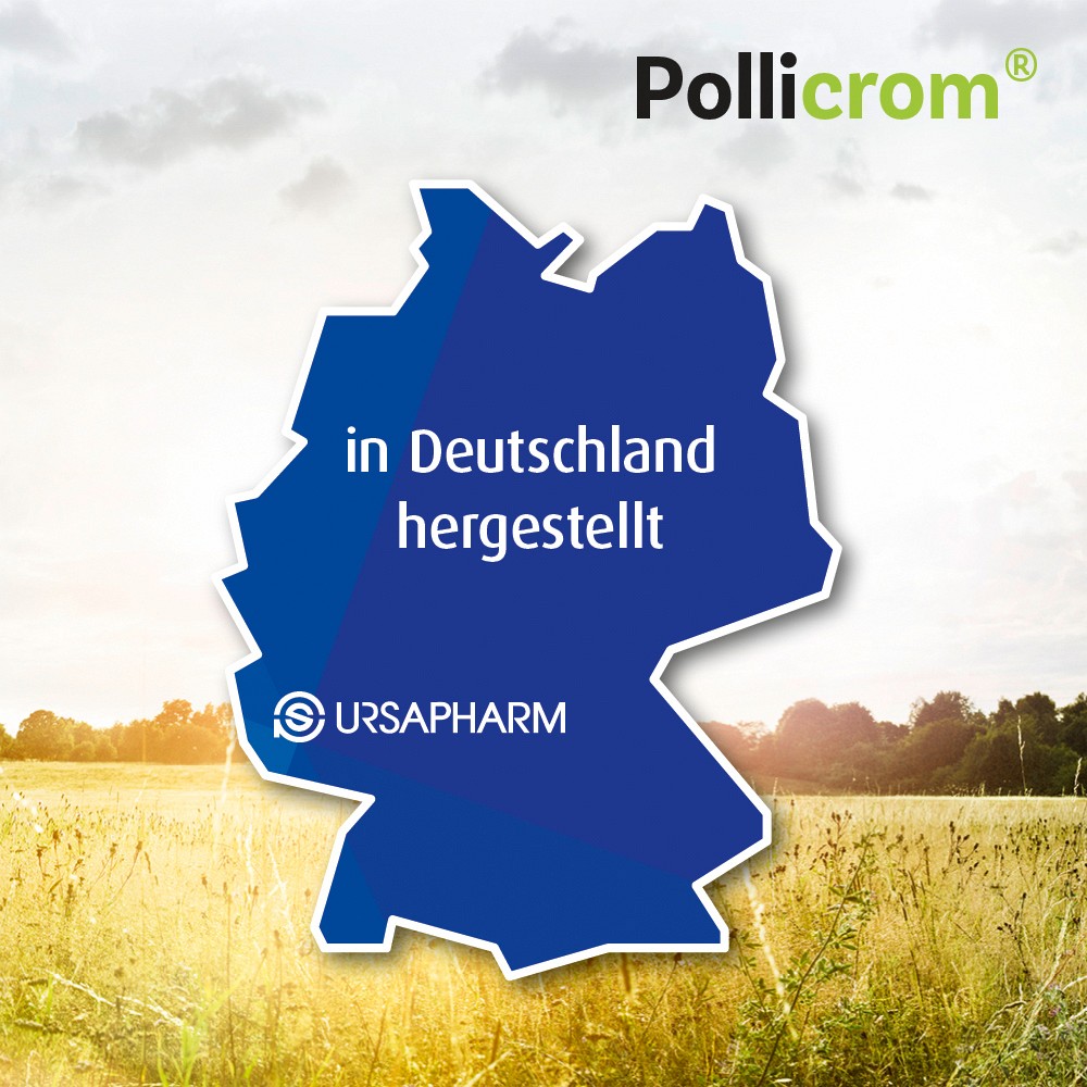 Mit der „Polli“ Produktlinie hat URSAPHARM ein effektives Arzneimittel-Konzept für Allergiker entwickelt. Als Basisschutz dienen Pollicrom® Augentropfen und Nasenspray mit Cromoglicinsäure (Natriumcromoglicat) zur sanften und dauerhaften Beschwerdefreiheit.Bei akuten Allergie- und Heuschnupfen-Symptomen wie juckenden Augen, Niesreiz und allergischem Schnupfen können Pollival® Augentropfen und Nasenspray mit Azelastin für rasche Linderung sorgen. Frei von Konservierungsmitteln und 100 % made in Germany in geprüfter Arzneimittel-Qualität.
