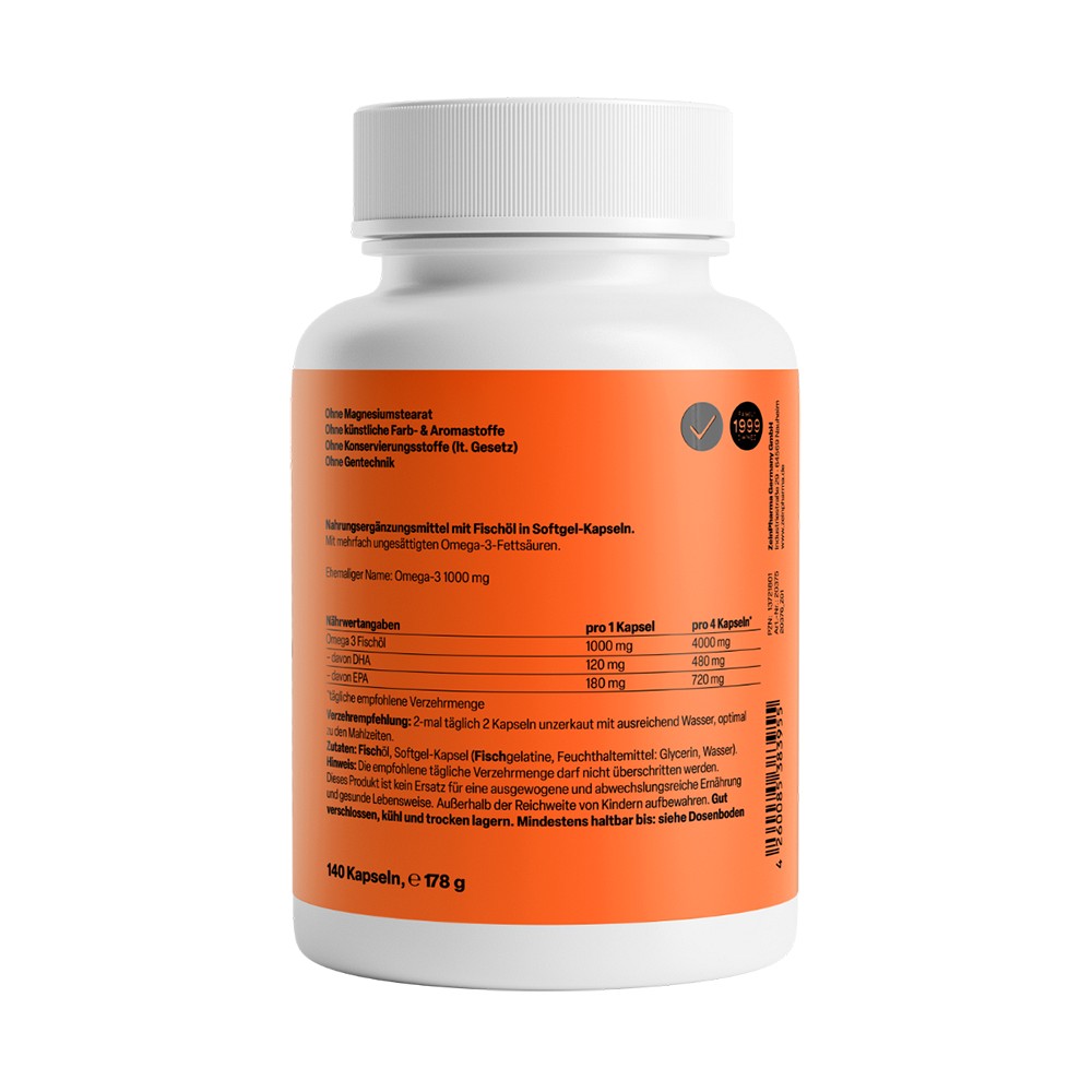 - Omega-3 Kapseln mit hochwertigen Fettsäuren aus Fischöl