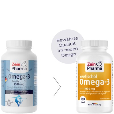 Omega-3-Fettsäuren gehören zu den mehrfach ungesättigten Fettsäuren, die wir regelmäßig mit der Nahrung aufnehmen müssen, da sie unser Körper nicht selbst synthetisieren kann. Sie sind ein wichtiger Baustein der Zellmembranen und übernehmen lebenswichtige Funktionen bei der Regulierung des Stoffwechsels und des Immunsystems.Besonders wichtig für diese Prozesse sind die beiden Fettsäuren EPA (Eicosapentaensäure) und DHA (Docosahexaensäure), die vor allem in Fischöl enthalten sind. Deshalb verwenden wir bei ZeinPharma® für unsere Omega-3-Gold Kapseln nur bestes Seefischöl, um die optimale Versorgung mit den wichtigen Omega-3-Fettsäuren EPA und DHA zu garantieren.