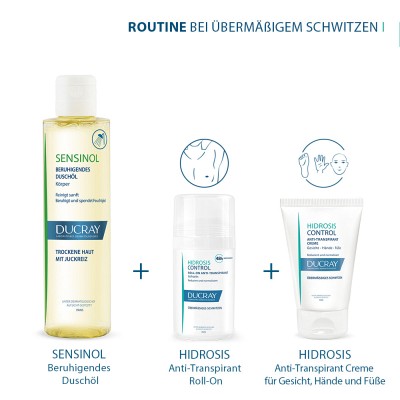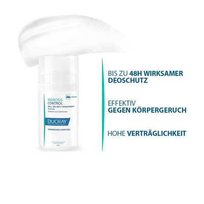 Stoppt übermäßiges Schwitzen und verhindert Geruchsbildung mit 48h Effekt - hochverträglich!Übermäßiges Schwitzen kann verschiedene Ursachen haben. HIDROSIS CONTROL ROLL-ON ANTI-TRANSPIRANT reguliert schnell und dauerhaft übermäßiges Schwitzen. Gegen Körpergeruch, hinterlässt keine Flecken. Für alle Hauttypen, selbst für empfindliche Haut, geeignet. Entwickelt, um die Gefahr von allergischen Reaktionen zu minimieren. Hohe Verträglichkeit.