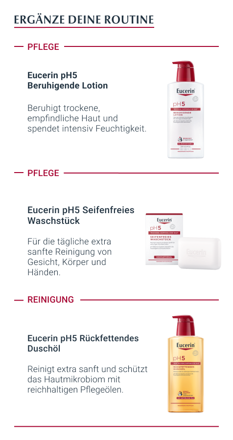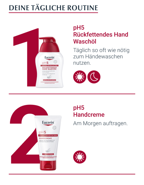 Für bestmögliche Resultate zusammen mit der Eucerin pH5 Handcreme verwenden