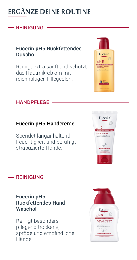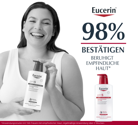 Außerdem ist die Eucerin pH5 Lotion dank neuer Formel mit dezentem Duft sowie schnelleinziehender, leichter Textur und sorgt für ein spürbar weicheres Hautgefühl. Zudem versorgt sie die Haut 24h intensiv mit der benötigten Feuchtigkeit. Dabei ist die Creme so einfach wie eine Bodylotion aufzutragen.