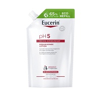 Mit der Hautpflege pH5 Lotion kann speziell strapazierte, empfindliche und trockene Haut gepflegt werden. Denn vor allem beanspruchte Haut reagiert leicht mit Spannungsgefühl, Hautirritationen und -rötungen auf Umweltreize und bedarf daher einer Hautpflege, welche die natürliche Schutzfunktion der Haut stärkt.Dank des Eucerin pH Balance Systems mit ph5 Citratpuffer wird der natürliche pH-Wert der Haut wiederhergestellt und gleichzeitig stimuliert der Inhaltsstoff 5% Dexpathenol die Regeneration der Haut und trägt dazu bei, ihre Widerstandskraft gegen äußere Einflüsse zu fördern. Somit unterstützt die Körperlotion die Wiederherstellung des physiologischen Gleichgewichts der Haut.