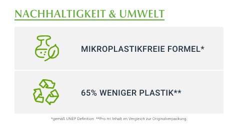- 65% weniger Plastikabfall im Vergleich zur Originalverpackung