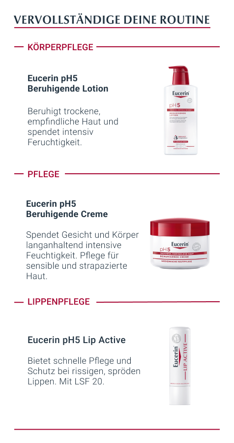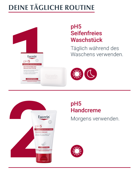 Eucerin pH5 Seifenfreies Waschstück mit milden Tensiden und natürlichem pH-Wert bewahrt nachweislich die natürliche Schutzfunktion und Widerstandskraft der Haut.Denn gerade empfindliche, trockene Haut reagiert schnell mit Spannungsgefühl, Hautrötungen und -irritationen auf bestimmte Umweltreize und benötigt eine sanfte Pflege.