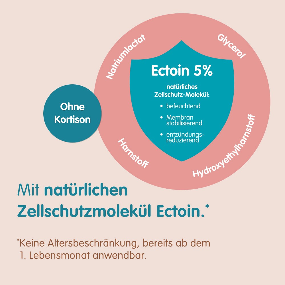 Zur Vorbeugung und symptomatischen Behandlung von NeurodermitisFür eine frühzeitige Behandlung eines Neurodermitis-Schubes – mit natürlichem Ectoin gegen juckende Haut und frei von Kortison.