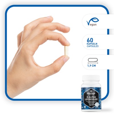 - Jede vegane Kapseln enthält 200 mg R-Alpha-Liponsäure