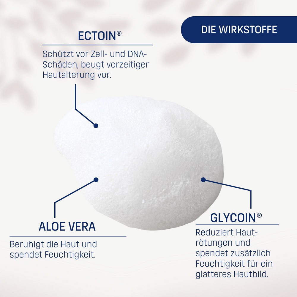 - Ectoin® mit Anti-Pollution- Effekt schützt vor Zell- und DNA-Schäden und beugt so vorzeitiger Hautalterung vor