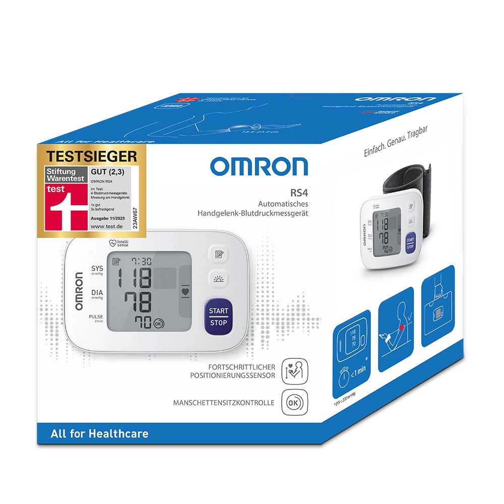 Das klinisch validierte OMRON RS4 Handgelenk-Blutdruckmessgerät besticht nicht nur durch kompaktes, elegantes Design – mit seinem innovativen Positionierungssensor ermittelt es durch zwei Sensoren die optimale Position für die Blutdruckmessung. So werden Messfehler vermieden und präzise Ergebnisse sichergestellt.Positionierungssensor &. Manschettensitzkontrolle